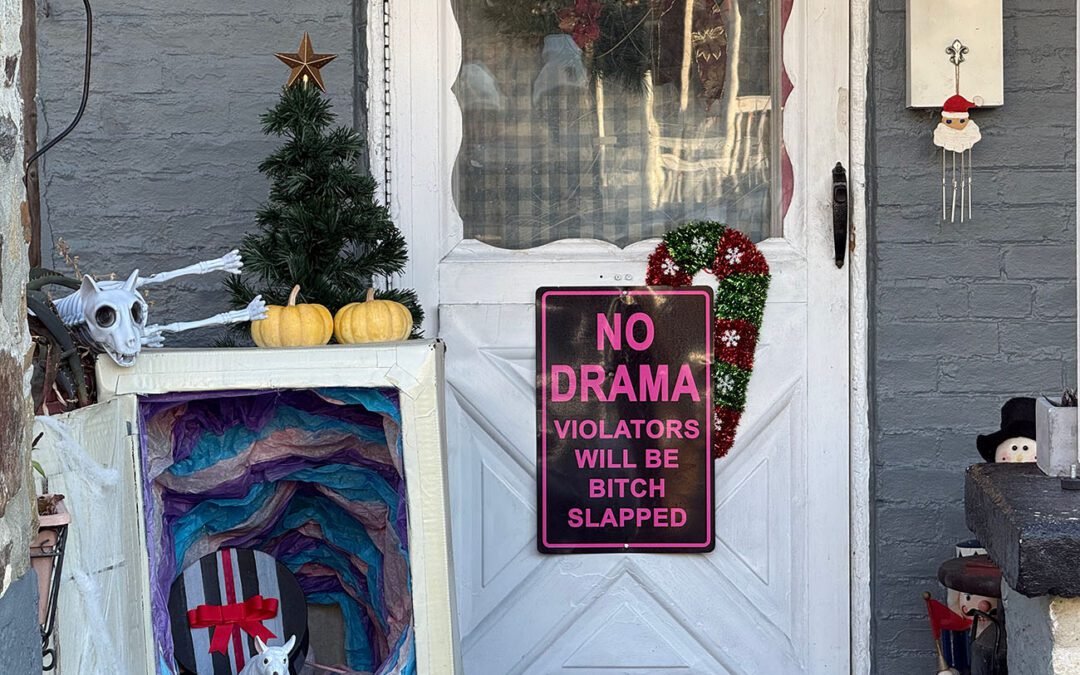 What’s more disturbing: The door sign or the holiday rat diorama?